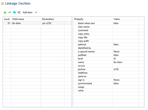 Linkage Section Designer The Linkage Storage Designer defines data items for the program’s Linkage Section as well as including existing copybooks. The isCOBOL IDE will generate the COBOL code for the program’s Linkage Section.