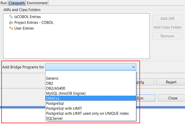 4. Edit the Run Configuration of your program and, in the Classpath page, bind the proper database routines set: