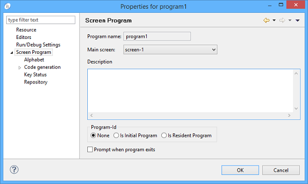 The Alphabet screen allows to provide alternate collating sequences to the program.