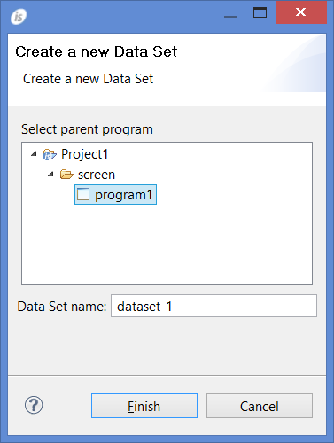 To create a new Dataset for the program, right click on the program name in the isCOBOL Explorer, select New / Data Set from the pop-up menu.
