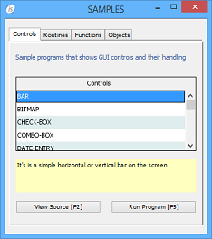 Controls Reference This chapter describes all the graphical controls that can appear in the program Screen Section. Basic sample programs for each control are available amongst the isCOBOL Samples. The advanced usage of graphical controls is shown in the isCOBOL Demo.