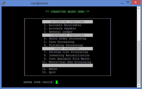 Character Based Screens isCOBOL can run applications with character based screens (green screens, text mode screens) on hardware terminals and terminal emulators. By default, isCOBOL emulates character based screens using graphical resources. This behavior produces an error if working on terminals that don’t include a graphical interface (dumb terminals and terminal emulators). The error returned is: No X11 DISPLAY variable was set, but this program performed an operation which requires it. To avoid this error and enable an application to use the terminal as the screen, isCOBOL takes advantage of CHARVA, a Java Windowing Toolkit for Text Terminals. See Using CHARVA for more information.