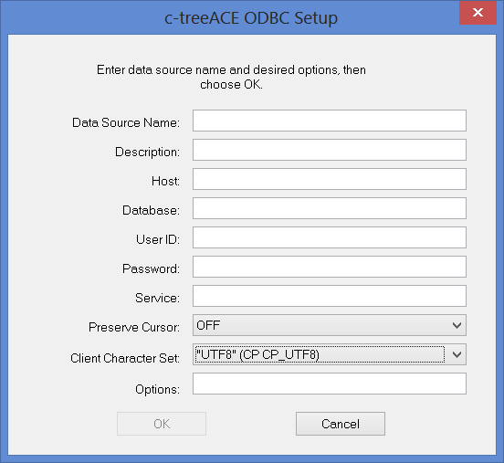 • Database: name of the database (i.e. "ctreeSQL”).