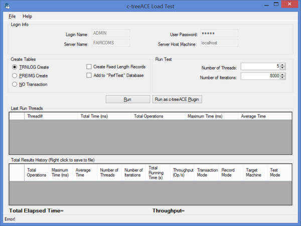 c-treeLoadTest c-treeLoadTest is a graphical utility provided for the Windows platform that quickly test and analyze throughput on specific machines and configurations. With multiple options to simulate various data streams, you can easily pinpoint performance bottlenecks. Refer to c-tree Server Administrator's Guide for additional information on this utility.