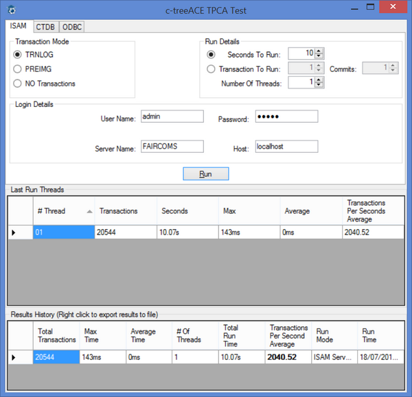 c-treeTPCATest c-treeTPCATest is a graphical performance benchmark provided for the Windows platform. Refer to c-tree Server Administrator's Guide for additional information on this utility.