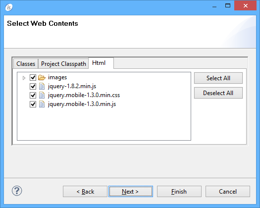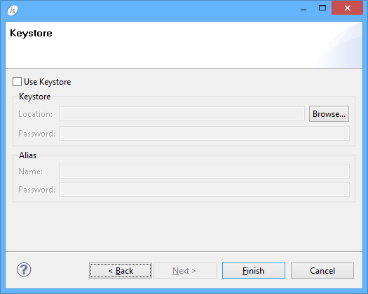 10. If you have a valid keystore to provide or you wish to exclude some project files from the app, click Next, otherwise click Finish.Note - If no keystore is provided, the IDE will include a default one. The default keystore is suitable for testing purposes. Before publishing your app in the Marketplace, you should apply a valid keystore to it.